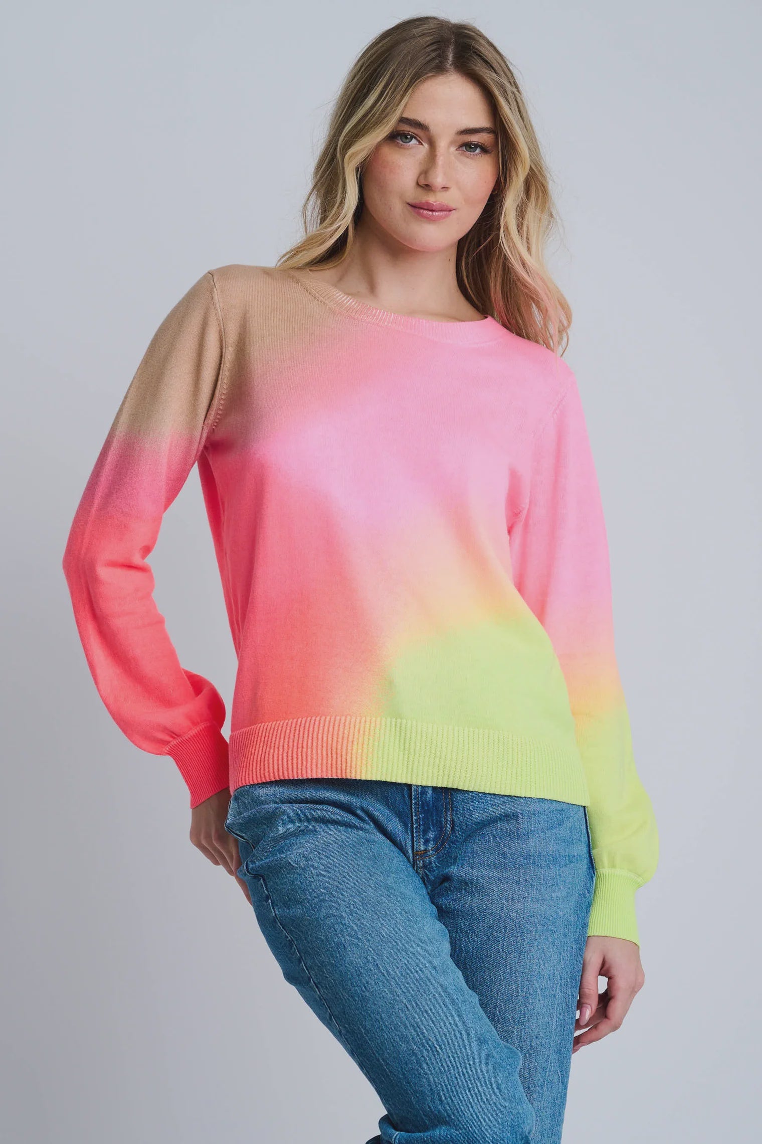 A fresh take on the classic crewneck, the Color Haze sweater is crafted from 100% Cotton and washed in a soft ombré print for subtle visual depth. Ribbed cuffs and hem lend structure to the true fit silhouette. Perfect for layering or wearing on its own through changing seasons.
