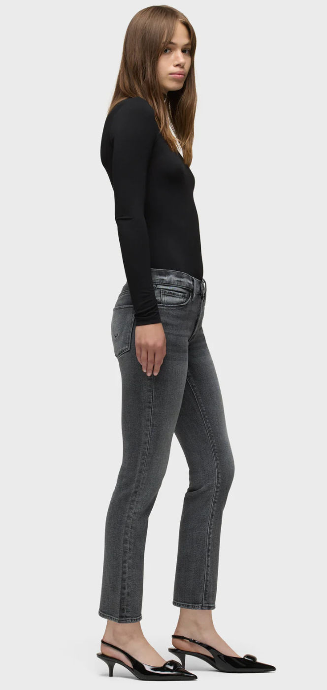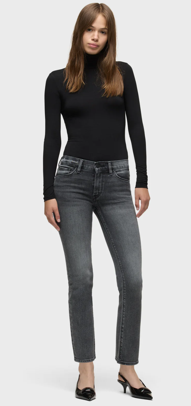 Our Nico Mid-Rise Straight Ankle Jean in Black Vortex is cropped with a 28" inseam for the ideal ankle length and finished with classic five-pocket styling and a clean-finished hem. This pair is made from comfort stretch denim in a washed black wash.