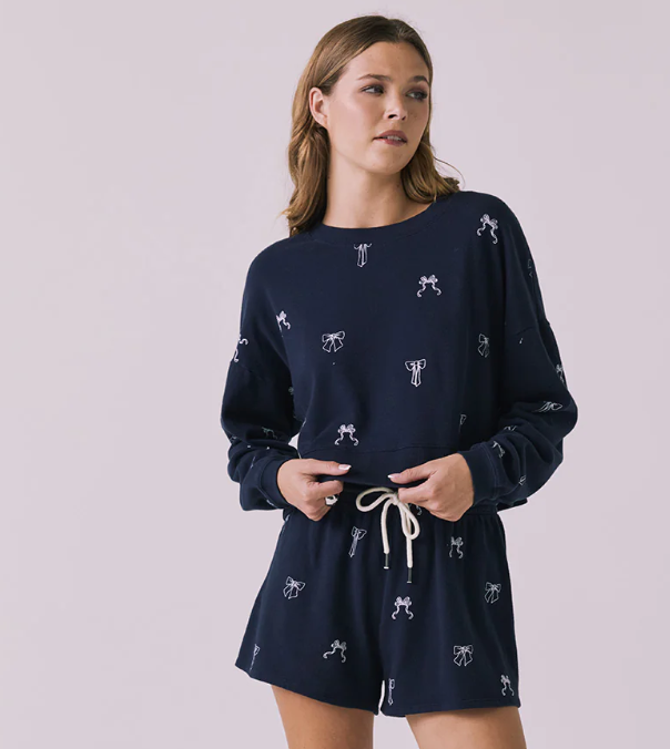 The Tossed Bows Long Sleeve offers a cozy yet chic loungewear option with its high neckline and long sleeves.